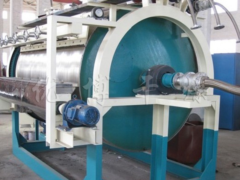 3、啟動(dòng)電機(jī),主滾筒動(dòng)運(yùn)轉(zhuǎn)平穩(wěn),溫度升高后加入物料后調(diào)整電機(jī)轉(zhuǎn)速及物料在滾筒上薄膜均勻程度來(lái)控制物料終含水量。